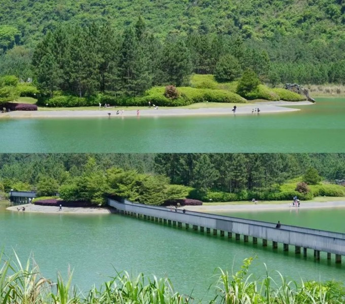 情人桥长199米,斜跨仙湖