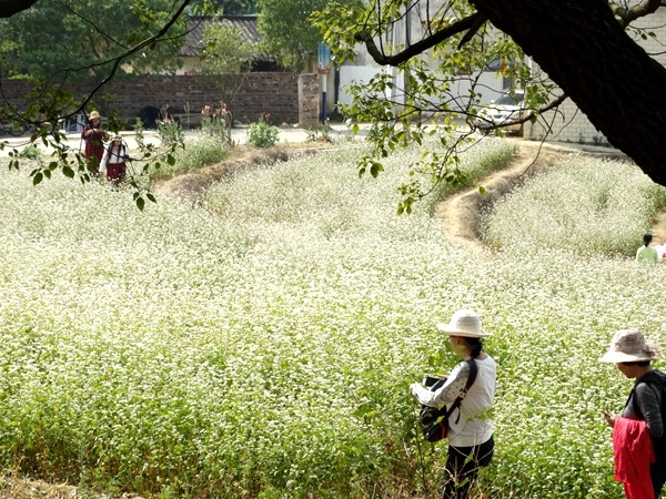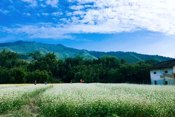 11:00 抵达赏荞麦花之地,翁源县周陂镇龙田村,近两百亩荞麦花遍野盛开,白茫茫一片,微风吹拂,麦浪滚滚,仿佛世外桃源、人间天堂, 大家可以在这里尽情观赏,拍照。