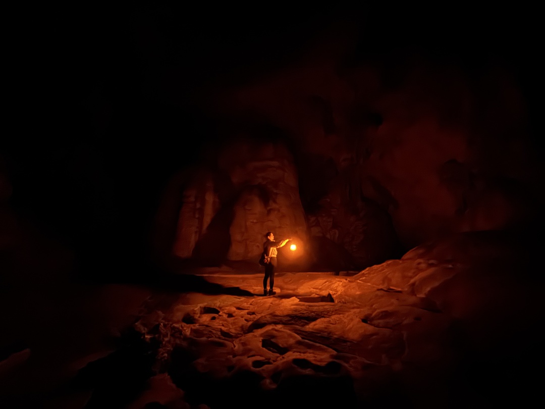 07:30徒步地心之旅。5小时的熊家俩洞连穿徒步穿越,线路很成熟,地心之旅徒步大会精华段就这里。这个季节,最合适早起登山,先进行一小段的登山,今天的午餐是路餐,只能是在洞里吃,带上温水,还有干粮,一起探索神奇的天坑溶洞世界吧