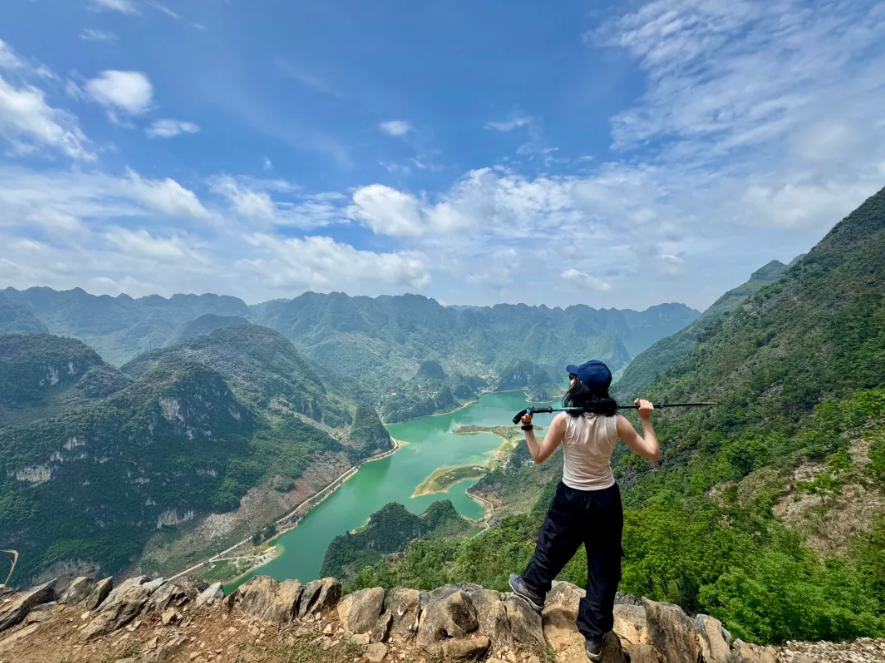 08:00早餐后出发,坐车1小时到达浩坤湖徒步起点,今天徒步网红浩坤湖穿越线,全程约13公里,爬升500米,徒步6小时左右。中午也是路餐干粮。这里也是广西山水经典的徒步景色