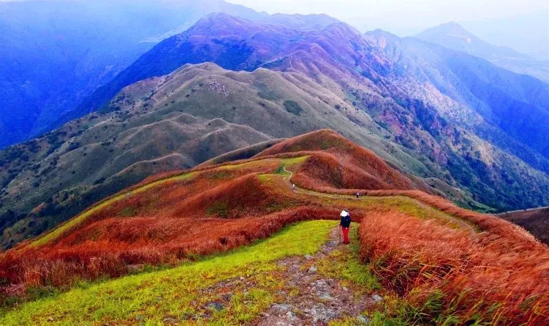 15:00 抵达水底山顶(约海拔1100左右),穿越大草坡,沿路漫山的草甸,十分迷人,会让你有投入草原怀抱的冲动;