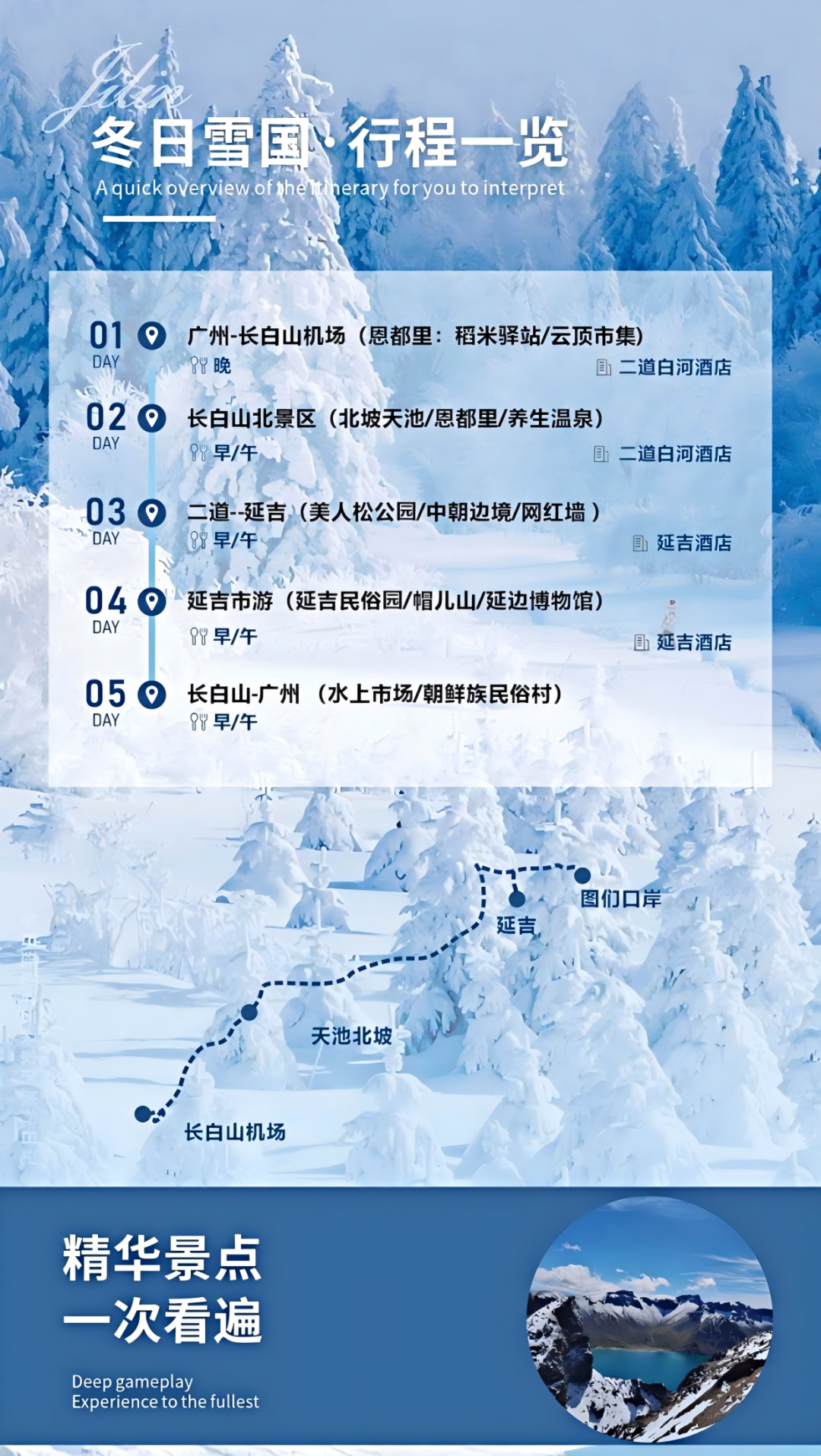 1)广州--长白山往返机票、机场建设费和燃油附加费(含20KG/人行李托运);