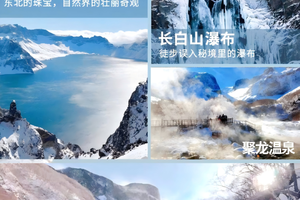 乘坐景区环保车前往第二站「长白瀑布」游览时间约:1.5小时,瀑布在乘槎河尽头飞流直泻形成高达68米的长白瀑布。山大坡陡,水势湍急,一眼望去,如同一架斜立的天梯。顺瀑布木栈道步行而下,无数条热流从地底涌出,似群龙喷水,故名「聚龙温泉群」。这里独有的温泉煮蛋,大家可以自行品尝一下哦!