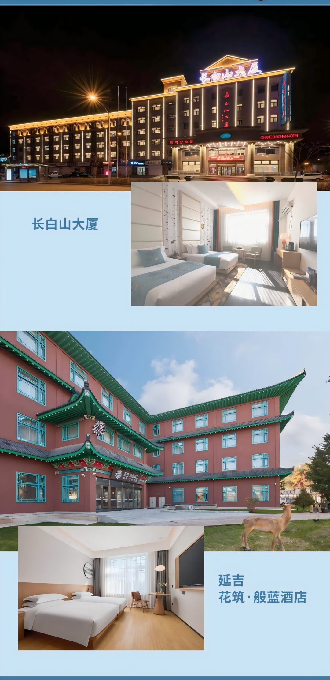 ▷ 住宿:二道白河酒店(长白山大厦/长白云水希悦或同级酒店)