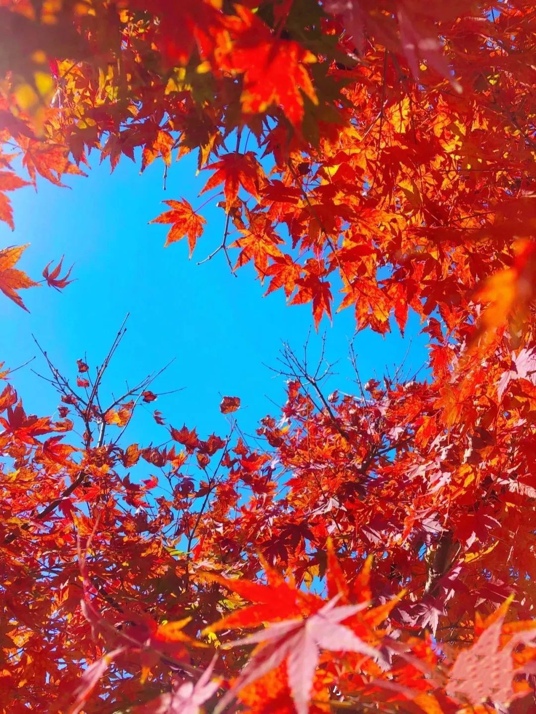 漫步在枫林间,踏着脚下枫叶铺的“红地毯”,呼吸着满满负离子的空气,让工作的劳累与紧张得到释放,忍不住按下快门,记录下这份秋日美好。