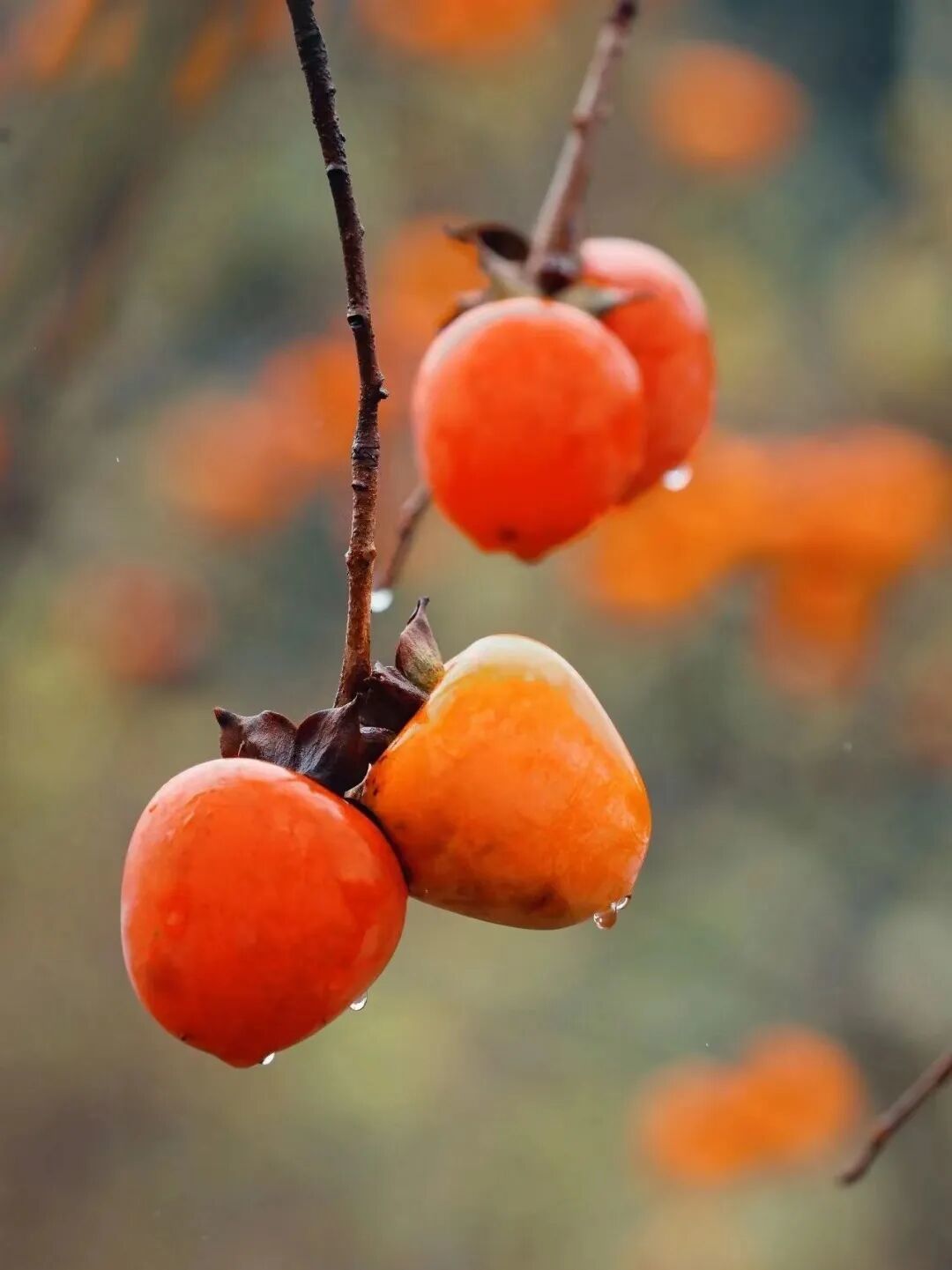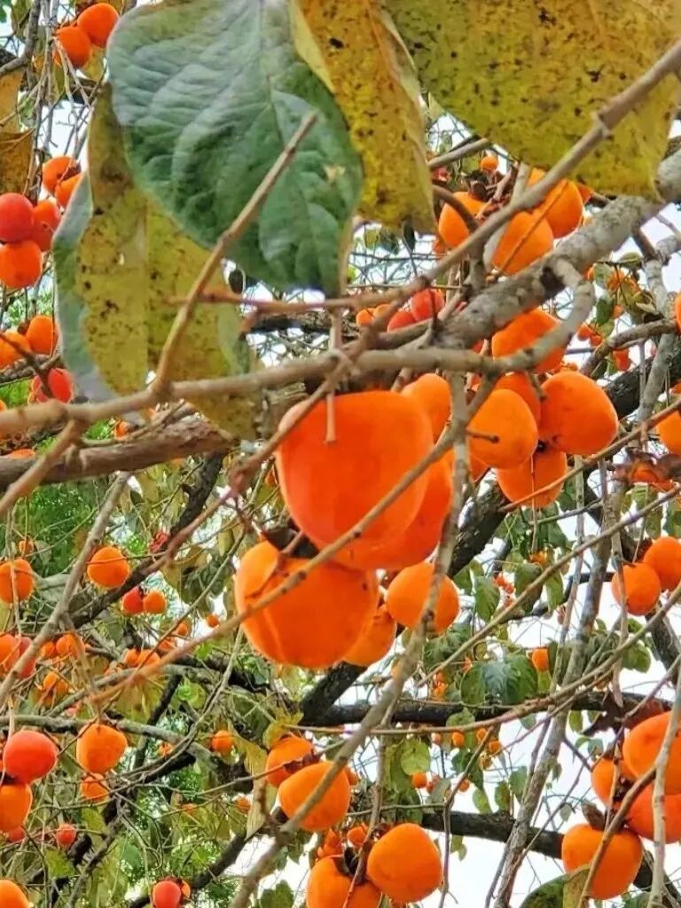 红澄澄的柿子,挨挨挤挤
