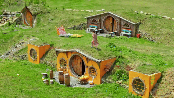 电影《霍比特人》同款小屋,晴天下的阳光洒落 在霍比特小屋,周围被郁郁葱葱的草坡包围着,背靠重重叠叠青云山脉,还原了《霍比特人》 的场景,随手就能拍出拍出宫崎骏电影感。