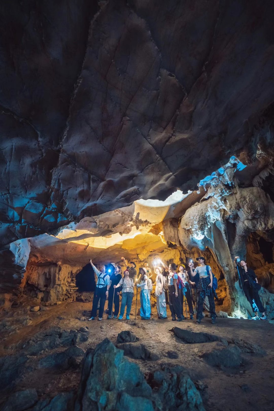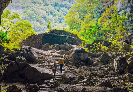 早餐后穿越喀斯特地貌的典型景观-四洞天,行走一段“黔桂古道”之后进入原始的洞穴里穿越,溶洞内钟乳石奇异,光影绰约;林深处植被繁茂,日光斑驳,鸟鸣悦耳。一路仿若与自然对话,尘世烦忧皆抛。