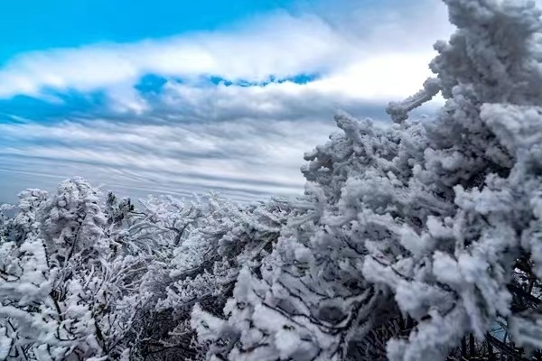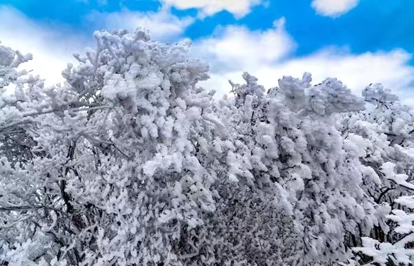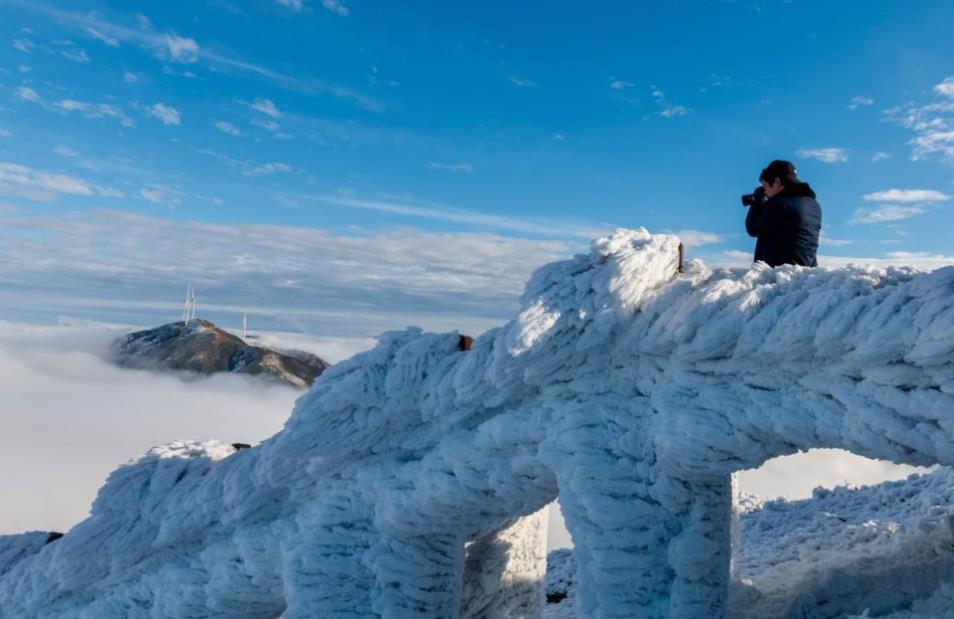 这里就呈现大面积的雾凇和冰挂交融的“冰雪世界”