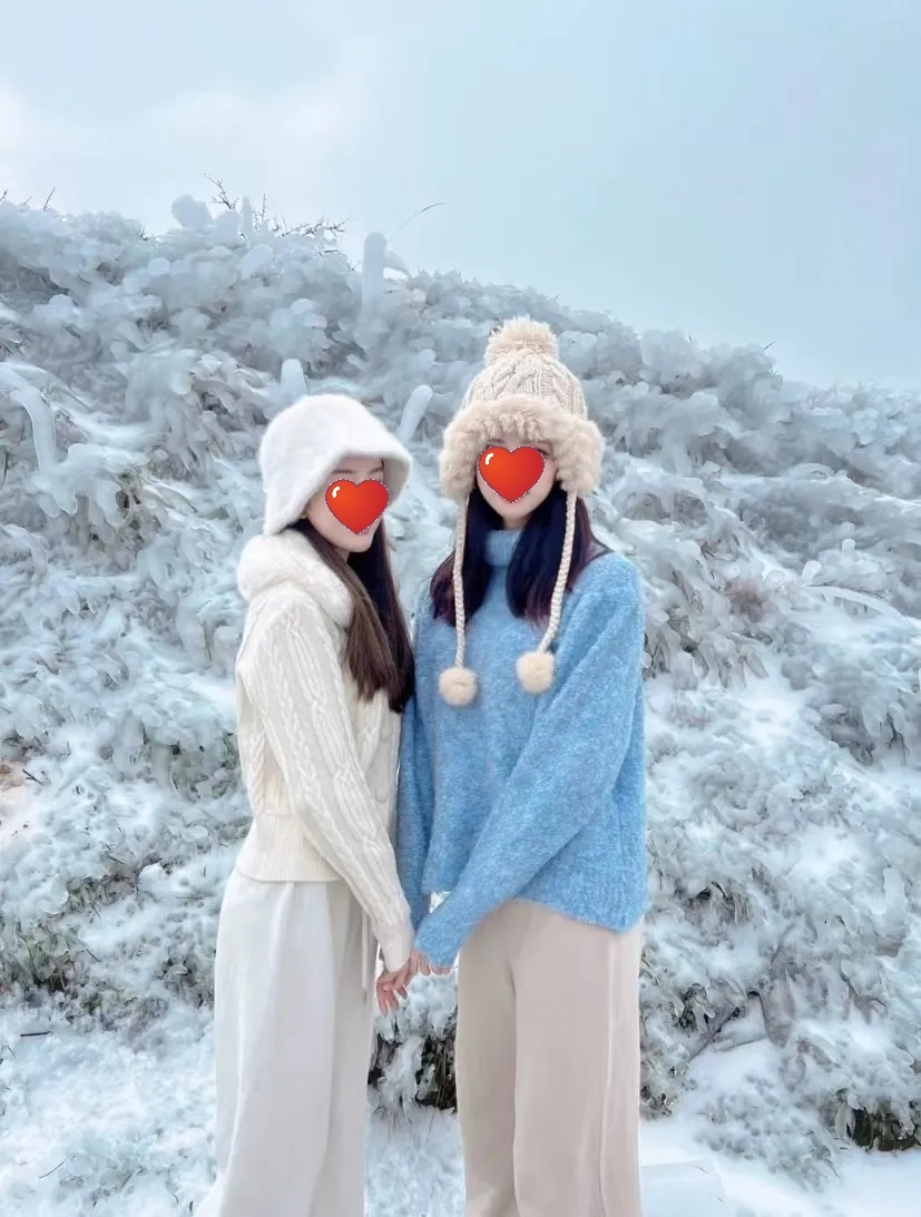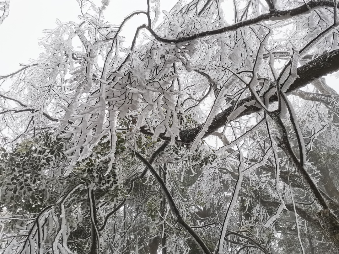 12:00 登雪峰,赏雾凇冰挂,拍照打卡,然后原路返回到网红茶园;