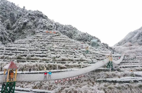 09:00 左右到达云冰山风景区,乘景区环保车前往南国雪乡之称的【云冰山景区】于湘粤交界的云冰山,以云海,冰雪奇观而得名,一览众山小的梦幻云海,奇特冰挂堪称一绝;每年的"雾凇 雪淞 雪景"奇观轮番上阵,素有南方"北国风光"的美誉(另外说明:如遇道路结冰等恶劣天气 ,景区为安全起见,云冰山中转车可能暂停且费用没的退,徒步上顶约3公里40分钟左右);