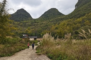 禾仓古道景色瑰丽多姿,这里都是喀斯特地貌,一路上风景如画,到了秋天路上还有许多小野菊。