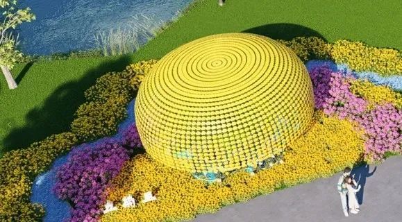 亮点三 荷兰风车花园用菊艺扎作出风车、木鞋、花田;法国画廊花园用菊花搭建地标性建筑物凯旋门;德国啤酒花园以黄菊动态呈现流动的啤酒;英国巴士花园模拟打造双层复古巴士、电话亭、伦敦桥场景。